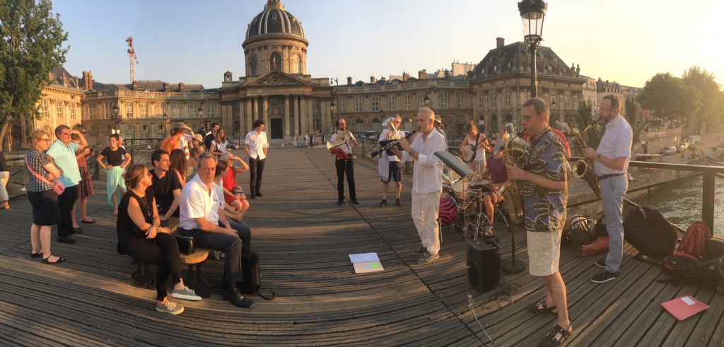 • En juin 1982, la fête de la musique qui, n’en déplaise aux snobs et au pisse-vinaigre, a permis chaque 21 juin à tous les musiciens amateurs de se produire dans la rue sans que les gendarmes ou policiers viennent les en empêcher. Je les ai toutes faites, des Champs-Élysées en 1982 à la passerelle des arts depuis pus de dix ans, à l’endroit même où Aya Nakamura et la Garde Républicaine ont interprété For me Formidable lors de l’ouverture des jeux olympiques. Et à chaque fois, en en remerciant Jack d’un mot ou d’un tweet.